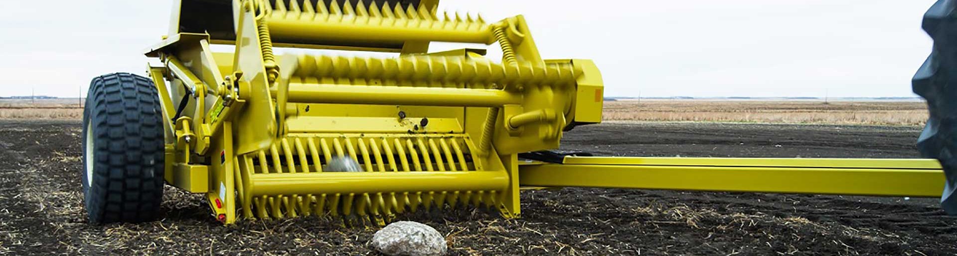 Стійка зчіпного пристрою, значно довше, ніж звичайні збирачі каменів, може повертатися, забезпечуючи велику робочу зону, чудову видимість для збору каменів і можливість мобільного монтажу техніки для вузького транспортування. Просто потягнувши за шпильку, машина готова до роботи в полі або на транспорті. Для більш вимогливих операторів доступна гідравлічна опція, яка рекомендується для загальної простоти використання і надзвичайно зручна для точного резервного копіювання на гірські відвали.
