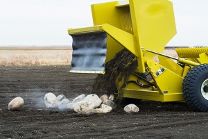 З величезним зазором у 28 дюймів між веслом і гратами легко збирати велике каміння. Ці машини призначені для безперервної роботи з важким камінням щодня.